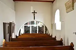 Die neue Kirche wurde 1935 an die alte Kirche angebaut, von der aus sie durch einen Wanddurchbruch betreten wird.