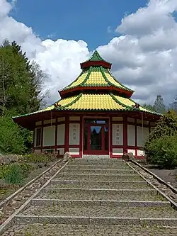 Anfang der 1950er Jahre wurde der Landkreis Zellerfeld in das Förderprogramm für Kommunen im Zonenrandgebiet aufgenommenen. Durch das damit zur Verfügung stehende Geld begann man damit, die Stadt wieder touristisch aufzubauen. Park und Grünanlagen wurden neu errichtet und die Infrastruktur optimiert. Wesentlich dazu beigetragen hat der 1953 gegründete Verkehrsverein.[67] 1956 errichtete die Stadt in der Oberstraße das erste Feuerwehrhaus, das ein zu kleines Spritzenhaus auf dem Gelände der Brauerei ablöste.[68] 1957 eröffnete die neue Schule in der Rothenberger Straße.[63] Erste Beratungen für den Bau eines Ferienparks auf dem bis dahin unbebauten Glockenberg fanden am 4. Juni 1968 statt und sollten eine Antwort auf den steigenden Bedarf an Ferienwohnungen in der Stadt stellen. Altenau konnte zu diesem Zeitpunkt über 428.121 Übernachtungen aufgeteilt auf 3.000 Gästebetten verbuchen[69] 1970–1972 ließ die Engelhardt-Gruppe aus Hannover für 100 Millionen DM den Ferienpark Glockenberg durch die Frankfurter Firma Philipp Holzmann errichten. Hierfür wurde eigens ein Wohnlager für rund 100 jugoslawische Bauarbeiter eingerichtet, das bis zum März 1972 bestand.[69] Baubeginn war am 1. April 1970 bei 80 Zentimeter Schneelage und die Grundsteinlegung erfolgte am 28. Oktober desselben Jahres. Der Ferienpark umfasst neun Hochhäuser mit bis zu 14 Stockwerken, in denen sich über 1200 Wohnungen und verschiedene Einzelhandelsgeschäfte befinden.[70] Neben den Hochhäusern errichtete man auch weitere Ringstraßen mit Wohngebäuden sowie ein Wellenbad, eine Eissporthalle und einen Kindergarten auf dem Glockenberg. Bereits ein Jahr nach der Eröffnung 1973 konnten schon etwa 900 der 1200 Appartements vermittelt werden. Die Übernachtungszahlen beliefen sich auf 558.000 Übernachtungen, verteilt auf 5400 Fremdenbetten. Pläne zur Errichtung einer Seilbahn mit Skigebiet vom Mühlenberg auf den Bruchberg wurden aus Gründen des Naturschutzes nicht umgesetzt.[71] Am 10. Februar 1972 erhielt die Stadt vom Hildesheimer Regierungspräsidenten die Anerkennung zum Heilklimatischen Kurort.[67] Im selben Jahr wurde Altenau Teil der Samtgemeinde Oberharz. 1976 verkehrte ein letzter Zug auf der Innerstetalbahn, die Strecke wurde anschließend demontiert. 1979 nahm man das heutige Feuerwehrhaus in der Großen Oker in Betrieb, nachdem seit der Anschaffung einer Drehleiter der Platz im alten Feuerwehrhaus in der Oberstraße nicht mehr ausreichte. Bis in die 1980er Jahre entstand das Wohnviertel im Tal der Kleinen Oker, das von alten Kurvillen der 1920er Jahre, aber auch von modernen Gebäuden der 1970er und 1980er Jahre geprägt wird. Es erstreckt sich über die Straße Kleine Oker, den Bergmannsstieg und die Straße „Am Kunstberg“