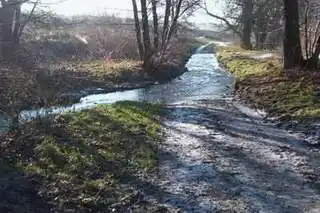 Entlang des Friedhofs führt ihr Lauf zum Gelände der ehemaligen Zuckerfabrik und zur Kläranlage, die sie als Vorflut nutzt. Sie knickt nach Nordwesten zu den zwei früheren Klärteichen westlich der Banslebener Kuckucksmühle ab. Sie sind seit 1997 ein vom NABU gepachtetes Wasservogelreservat.[3]