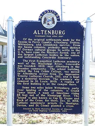 Der Name der Stadt Altenburg kam von der Thüringer Stadt Altenburg. Auswanderer aus anderen deutschen Städten benannten auch die umliegenden Dörfer Dresden (heute Uniontown), Johannisburg und Seelitz nach ihren Heimatorten.[4]