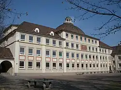 Ursprünglich war die Schule in getrennte Flügel für Mädchen und Jungen unterteilt und umfasste 34 Klassenzimmer. Im Laufe der Jahre wurde das Gebäude mehrfach saniert und erweitert, wobei stets darauf geachtet wurde, die historische Bausubstanz zu erhalten. Aktuell wird das Stammgebäude umfassend saniert und an die Anforderungen des zeitgemäßen Unterrichts angepasst. Dabei werden prägende Baustrukturen wie der historische Fahnenmast auf dem Schulhof bewahrt und bauzeitliche Materialien wieder freigelegt.[2]