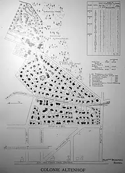 Altenhof I mit evangelischer Kapelle, 1901 errichtet (vom Gußmannplatz aus gesehen) -