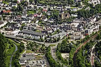 In dem ortskernnahen Gebiet Am Wigey entstand ab 1980 ein Gewerbegebiet mit derzeit 14 Betrieben. Ein weiteres gewerbliches Areal konnte auf dem Gelände des früheren Bahnbetriebswerkes errichtet werden, seit 1994 siedelten sich hier 16 Betriebe an (Stand jeweils August 2009).[22] Die im Rahmen des Projekts LenneSchiene geförderte Erneuerung des Marktplatzes und Sanierung der Tiefgarage konnten im Mai 2014 abgeschlossen werden.