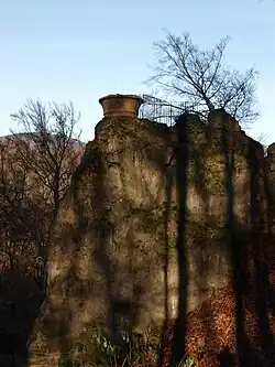 Eine benachbarte Felsgruppe auf der Ostseite des entstehenden erweiterten Parkgeländes wurde mit einem Aussichtspavillon – der sogenannten „Rotunde“ (erbaut um 1800) – versehen. Der Zugang erfolgte durch einen in den Fels gehauenen unterirdischen Gang, der in einer Wendeltreppe endete und zur Aussichtsplattform hinaufführte. Leider ist auch dieses Bauwerk nicht mehr präsent, es musste 1884 demontiert werden. Zu besichtigen sind noch der Stollen und der Treppenschacht.[17] Eine Restaurierung und Wiederherstellung ist geplant.