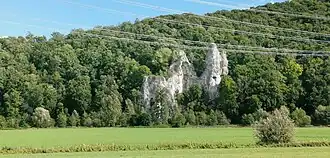 ![]() Die Burg mit dem vermutlichen Namen Hohenstein stand auf dem mittleren der drei Kalkstotzen des Hohensteiner Fels, 2022