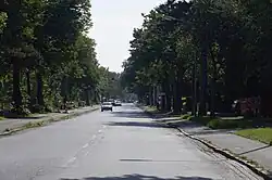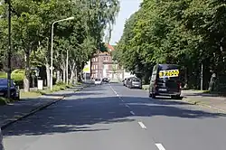 An der Straße stehen zumeist ein- bis zweigeschossige Gebäude, zumeist freistehende Einfamilienhäuser. Neben der Straße verläuft zunächst an der Ost- und dann Westseite der Landwehrkanal. Die mit D gekennzeichnete Häuser stehen unter Denkmalschutz.[2]