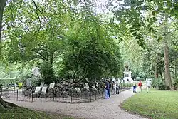 | Friedrich Wilhelm Funke | 1785–1862[5] | Kaufmann und Bürgermeister | Zwei gusseiserne Kreuze, Felsen und klassizistischer Pfeilergrag. Größeres Kreuz verziert mit dem Haupt Christi mit dem Dornenkranz. | Christian Friedrich Tieck (Haupt Christi) | |