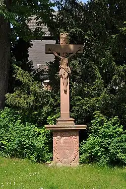 Entlang der Adenauerallee und Frankfurter Landstraße befindet sich die Kreuzallee, ein Weg, an dem sieben Stationen des Kreuzweges Jesu durch Kreuze dargestellt sind. Der Bau entstand durch eine Stiftung des Vikars Nikolaus Kirsch 1712. Den Anfang des Weges bildet ein 1723 errichtetes Kreuz mit noch kaum lesbarer Inschrift. Das Ende bildet ein hervorragend erhaltenes Kreuz von 1739. Diese befindet sich heute außerhalb des Friedhofs in einer Grünanlage an der Homburger Landstraße. Eine kleine Marienkapelle in der Mitte des Weges, wurde 1904 abgerissen, um für den Gordon-Bennett-Cup Platz zu schaffen.