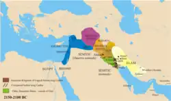 Ab etwa 3000 v. Chr. wanderten semitische Nomaden von Norden her nach Mesopotamien ein. Einem Nachfahren dieser Semiten gelang es um 2340 v. Chr. als Mundschenk den letzten König von Kiš abzusetzen und selbst den Thron zu besteigen. Er nannte sich selbst anschließend Šarrukin (Sargon, ‚wahrer König‘) und gründete in Akkad eine neue Hauptstadt, nach der die folgende Epoche Akkadzeit (2340–2100 v. Chr.) genannt wird. Sargon und seinen Nachfolgern gelang es mit einer aggressiven Expansionspolitik erstmals, einen großen Territorialstaat zu errichten, der ganz Mesopotamien, große Teile Syriens und kleinere Anteile Anatoliens und Irans umfasste. Programmatisch nannten sie sich „König der vier Weltgegenden“ und ließen sich ab Naram-Sîn vergöttlichen. Das politisch instabile Akkadreich erlebte zahlreiche Aufstände, von denen Königsinschriften berichten, und begann nach etwa 150 Jahren unter dem Druck von einwandernden gutäischen Stämmen wieder in sich zusammenzubrechen, bevor es um 2100 v. Chr. endgültig verschwand.