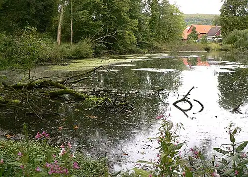 ![]() Verlandender Teich mit umgestürzten Bäumen im NSG | ||