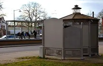 - Michael Zgoll: Denkmalgeschütztes Pissoir wird wieder hübsch gemacht / Außen verschnörkelte Säulen, innen Graffiti: Das denkmalgeschützte Klohäuschen in Hannover-Wülfel soll jetzt restauriert werden. In: Hannoversche Allgemeine Zeitung vom 12. Mai 2015; online-Version