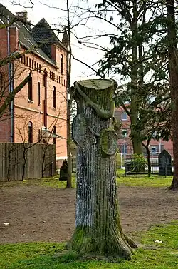 Der etwa 400 m von der Kapelle entfernte Alter Wülfeler Friedhof entstand „[...] vor 1811“.[1] Aus der zweiten Hälfte des 19. Jahrhunderts haben sich auf dem alten Kirchhof einige Grabmäler erhalten, davon eines, das als ein Kuriosum der hannoverschen Friedhofskunst angesehen wird:[3] Ein Baumstamm mit einer Schlange von 1881.[1]