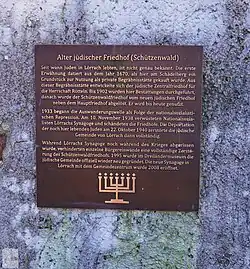 Auf dem 2281 Quadratmeter großen jüdischen Friedhof am Schützenwaldweg sind 39,[1] nach anderen Angaben ca. 20[2] Grabsteine vorhanden, davon noch drei datierbare Grabsteine aus den Jahren 1869, 1879 und 1902. Von den restlichen Steinen sind nur Fragmente vorhanden oder es fehlen die Inschriftenplatten.