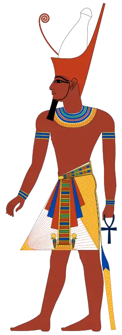 Der altägyptische Staat basierte auf dem Prinzip des Gottkönigtums. Der Herrschertitel Pharao (von ägyptisch per aa – „großes Haus“, ursprünglich Palastbezeichnung) entwickelte sich seit dem Neuen Reich (ab 1550 v. Chr.) zur Standardbezeichnung. Der König galt als irdische Inkarnation des Falkengottes Horus sowie später als Sohn des Sonnengottes Re, der durch Königsrituale die kosmische Ordnung Ma’at garantierte. Seine sakrale Legitimation manifestierte sich in den Herrschaftsinsignien: der Pschent-Doppelkrone (Vereinigungssymbol aus Hedjet-Oberägyptenkrone und Deschret-Unterägyptenkrone), dem Was-Zepter, dem Krummstab (Hekazepter) und der Nechacha-Geißel.