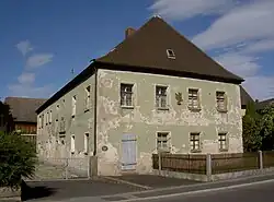 Das heruntergekommene Gebäude ist ein zweigeschossiger langgestreckter Walmdachbau mit abgefasten Gewänden. Das Portal ist mit dem Pfalz-Sulzbachischem Wappen und der Jahreszahl 1688 geschmückt. Auf der Schmalseite zur Straße ist ein Sandsteinrelief mit einem Hahn als Wappentier angebracht, ein Hinweis auf die Besitzer im 18. Jahrhundert.