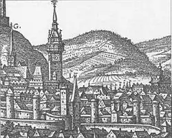 Am Eingangsportal des Rathauses fällt zunächst das schiefe mittlere Türmchen ins Auge. Der Sage nach war der Erbauer des Portals Anton Pilgram mit der Bezahlung nicht einverstanden, und nachdem man seiner Forderung nach einer Aufbesserung nicht nachkam, erbaute er das Türmchen schief.