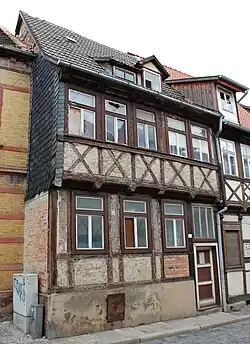 Das zweigeschossige Fachwerkhaus entstand in der Zeit um 1680. An der Brüstung des vorkragenden Obergeschosses finden sich Andreaskreuze. Darüber hinaus bestehen weitere Verzierungen der Fachwerkfassade, so eine profilierte Stockschwelle, Pyramidenbalkenköpfe und Schiffskehlen.