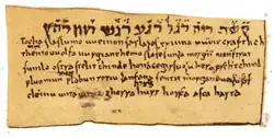 Dem althochdeutschen Text gehen sieben hebräischen Wörtern voran: קשת רוח רנל רנע רנש רזון רחץ. Auf der Rückseite des Pergamentstreifens befindet sich eine weitere hebräische Zeile: חכמה ואדם יפיק תבונה לך אל – ein Fragment von zwei Versen des biblischen Buchs der Sprüche (Ende von 3,13 und Anfang von 6,6 ). Es handle sich offenbar um Federproben. Darauf aufbauend vermutete Zappert (S. 12), dass die Eintragung von einem deutschen Juden, vielleicht einem Rabbi oder Arzt, stammt, der das Schlummerlied von einer Amme gehört haben mag.