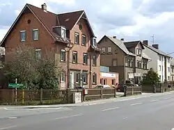 - An der Grenze zum Stadtteil Meyernberg steht mit dem Ypsilon-Haus das höchste Wohngebäude und mit 380 Wohnungen die größte Wohnanlage der Stadt.[49] Erbaut wurde es 1972 bis 1974 jenseits des Mistelbachs auf dem Gelände der ehemaligen Aktienziegelei.[50]