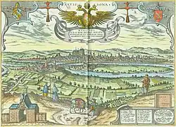 - 16. Jahrhundert: Als sich die wirtschaftliche Situation von Regensburg nicht verbesserte, folgte eine mehrjährige Phase mit sozialen Unruhen, ausgelöst durch Anhänger des Bayerischen Herzogs. 1514 stellte der Kaiser Regensburg unter eine neue Stadtverfassung, die sog. Regimentsordnung, die bis 1803 Bestand hatte. Die weiterhin angespannte Lage führte 1519 zur Vertreibung der Regensburger Juden und dem Abriss aller Häuser des Judenviertels. Es entstand der Neupfarrplatz zunächst mit einem provisorischen Kirchbau, der später zur heutigen Neupfarrkirche vollendet wurde. 1542 nahm der Rat der Stadt die Evangelische Konfession an und nur Bürger dieser Konfession erhielten das Bürgerrecht. Das bayerische Stadtamhof, blieb überwiegend katholisch.