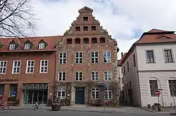 Heine-Haus | Das Haus befindet sich nördlich des Rathauses an der Ecke zur Burmeisterstraße, hier befindet sich auch das Haupthaus. Hier kann ein Haus ab 1300 nachgewiesen werden. In dem Haus sind umfangreiche Deckenmalereien aus dem 18. Jahrhundert erhalten. | 30655000 |
