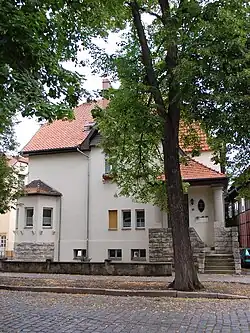 Die Villa entstand im Jahr 1913 nach Plänen von Hermann Wellmann. Der zweigeschossige verputzte Bau ist im Heimatstil gestaltet. Die Fassade ist nur sparsam gestaltet. Das Portal ist durch Säulen und einen Giebel betont.