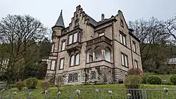 Die historistische Villa wurde im Jahr 1908 vom Bad Kissinger Architekten Carl Krampf errichtet. Bei dem Anwesen handelt es sich um einen zweigeschossigen Kalksteinbau mit Satteldach, Eckturm, Treppengiebel und Sandsteingliederungselementen. Diese historistischen Elemente kombinieren die Formensprache der Romanik und der Gotik.
