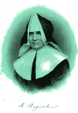 Amalie von Lasaulx wurde am 19. Oktober 1815 in Koblenz als Tochter des Architekten Johann Claudius von Lassaulx geboren. Im Jahre 1840 trat sie dem Orden der Barmherzigen Schwestern (Borromäerinnen) bei und nahm den Ordensnamen „Schwester Augustine“ an. Ab 1849 wirkte sie als Oberin des Johanneshospitals in Bonn. Während der Kriege 1864 und 1866 pflegte sie Verwundete in Feldlazaretten in Schleswig und in Böhmen.