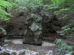 Ruhend zwischen Gestein, hat er nun Steine genug.[6]