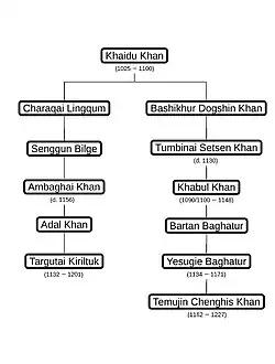 Ambaghai hinterließ mehrere Söhne von seinen zwei Frauen Orbei und Sokhatai:[5]