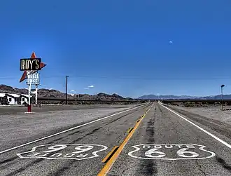 Durch den National Trails Highway (1914) und im Jahre 1926 nach Eröffnung der Route 66, die durch Amboy führten, erlebte die kleine Stadt einen Boom. Durch seine einsame Lage inmitten der Mojave-Wüste war Amboy in weitem Umkreis die einzige Möglichkeit zum Tanken, Essen oder Übernachten und wurde so ein wichtiger Rastplatz für die Durchreisenden. 1938 eröffnete das Roy´s Cafe und Motel in Amboy. Mit seinem markanten, 1959 errichteten Werbeschild wurde es zu einem Wahrzeichen der Mother Road. Zum wirtschaftlichen Erfolg von Amboy trug auch die Santa Fe Railroad von Kingman (Arizona) bis Barstow (Kalifornien) bei, die über viele Meilen parallel zur Route 66 durch die Wüste führt. Nach der großen Depression Anfang der dreißiger Jahre und im Zweiten Weltkrieg ging zwar der Tourismus in den USA stark zurück, aber es blieben genug Durchreisende, die einen Rastplatz, ein Motel oder eine Tankstelle benötigten. Um 1940 bevölkerten 65 Einwohner den kleinen Wüstenort.