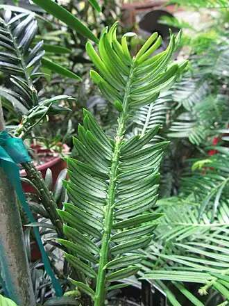 Zweig von Amentotaxus argotaenia | ||||||||||||