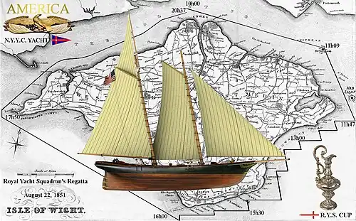 Die America war eine amerikanische Schoneryacht mit grünem Holzrumpf. Die Yacht America ist der Namensgeber des heute noch ausgetragenen America’s Cup. Sie gewann 1851 den erstmals ausgetragenen One Hundred Sovereigns Cup.