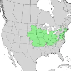 Natürliches Verbreitungsgebiet des Amerikanischen Zürgelbaums