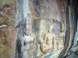 Reliefs am Felsvorsprung Pha Mo I Daeng, Tambon Sao Thong Chai