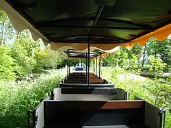 Die Zuggarnitur besteht aus einer Porschelok und den erhaltenen originalen Wagen dazu. Die drei bedachten Wagen sind zur Seite hin offen und ermöglichen einen guten Blick in die Parkanlagen. Die Abgase der Diesellok werden mittels eines Schlauchs unter den Wagen hindurchgeleitet, so dass die Passagiere ihnen nicht ausgesetzt sind.