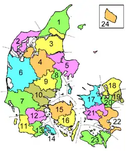| 8 | Århus Amt | 16 | Svendborg Amt | 24 | Bornholms Amt |