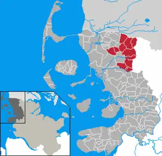 1974 reduzierte sich die Zahl der Gemeinden dann auf zehn: Klintum und Oster-Schnatebüll wurden nach Leck eingemeindet, Holzacker nach Stadum, Lütjenhorn nach Achtrup und die sechs Gemeinden Enge, Engerheide, Knorburg, Sande, Schardebüll und Soholm schlossen sich zur Gemeinde Enge-Sande zusammen.