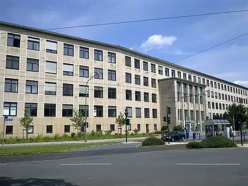 Nach Gründung des Deutschen Reiches 1871 trat am 1. Oktober 1879 das Gerichtsverfassungsgesetz in Kraft, das unter anderem den Gerichtsaufbau in der ordentlichen Gerichtsbarkeit vorsah. Bereits jetzt wurde das Gebäude durch die rasch anwachsende Stadt Essen, bedingt durch Einwanderungen für den Bergbau und die Stahlindustrie, zu klein. Von 1908 bis 1913 wurde am heutigen Platz an der Zweigertstraße ein neues Gerichtsgebäude mit barocker Fassade erbaut, das im Zweiten Weltkrieg zerstört und 1956 durch das heutige Gebäude ersetzt wurde.[3]