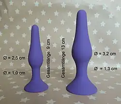 Als Sexspielzeuge entwickelte Butt-Plugs haben eine Form, die das vollständige Hineinrutschen ins Rektum verhindert.