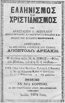 - Ellinismos kai Christianismos. Korinth 1873
