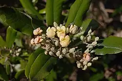 Die Blüten sind deutlich gestielt. Der glockenförmige Kelch ist bis zur Mitte geteilt und filzig mit sternförmigen Trichomen behaart. Die Krone ist gelb, auf der Innenseite befinden sich karminrote Markierungen. Der Kronsaum ist in zwei Lippen geteilt, die Kronzipfel sind abspreizend. Die Kronröhre ist glockenförmig und kürzer als die Kronlappen. Die vier Staubblätter stehen nicht über die Krone hinaus. Der Fruchtknoten ist nahezu kugelförmig.