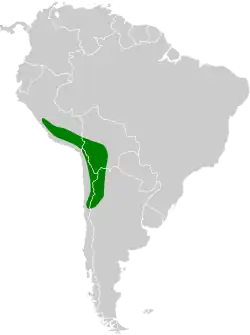 Der Vogel kommt in den Anden vom Süden Perus (Junín) über Bolivien, Norden Chiles (Región de Atacama) bis Nordwesten Argentiniens (Provinz Catamarca) vor.