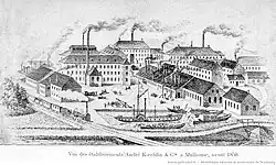 Zu Beginn des 19. Jahrhunderts führte die Mechanisierung und Entwicklung der Textilindustrie zur Gründung von mechanischen Fabriken, die der Textilindustrie die notwendige Ausrüstung zur Verbesserung ihrer Produktion zur Verfügung stellten.[1] André Koechlin, ein Industrieller und Geschäftsmann aus Mulhouse, der Erfahrung in der Textilproduktion und erhebliche finanzielle Mittel hatte, erkannte 1823 die Möglichkeiten des sich schnell entwickelnden Marktes. Zwei Jahre später begann er, sein Geschäft vorzubereiten, als er 1825 ein neun Hektar großes Grundstück am Rhône-Rhein-Kanal in der Nähe der Porte du Miroir in Mulhouse kaufte.[1]