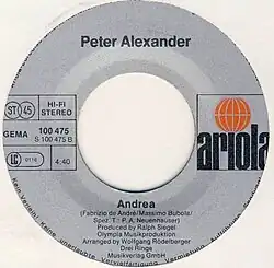 Bereits 1979 veröffentlichte der österreichische Schlagersänger Peter Alexander eine deutschsprachige Coverversion des Liedes als B-Seite der sehr erfolgreichen Single Und manchmal weinst du sicher ein paar Tränen bei Ariola, produziert von Ralph Siegel.[13] Unter Beibehaltung des Titels wurde Andrea im vom Sänger selbst geschriebenen Text nun weiblich und zur angesprochenen Person. Damit besteht kein inhaltlicher Zusammenhang mit dem Original. Sigi Maron veröffentlichte im selben Jahr eine ebenfalls deutschsprachige Coverversion, jedoch unter dem originalgetreuen Titel Andreas; auch der Inhalt kam dem Original näher.[14]
