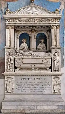- Grabmonument des Kardinals Bernardino Lonati (1497); Basilika Santa Maria del Popolo (linkes Querschiff), Rom. Bregno-Schule