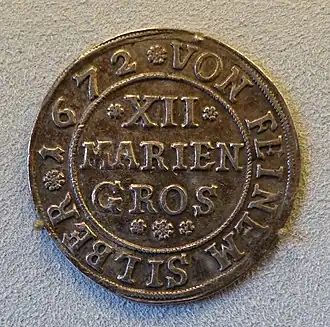 Parallel dazu war er auch von 1668 bis 1672,[9] konkret ab dem 17. April 1668, für die Stadt „Eimbeck“ als Münzmeister tätig, um Groschen sowie 4- und 3-Pfennig-Stücke zu prägen. Diese Münzen sollte er der Niedersächsischen Kreis-Münzordnung entsprechend fertigen, wofür er mit seinem gesamten Hab und Gut haftete. Zugleich beanspruchte der Rat der Stadt Einbeck für jede Mark einen Prägeschatz von 3 Mariengroschen.[10]