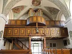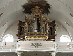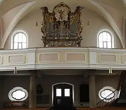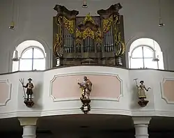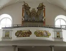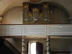 Im typischen Weiß-Gehäuse steht die Orgel op. 332 von Binder und Siemann (1915, 9/II/P), 2003 restauriert von Thomas Jann [1]