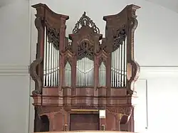 II/P 16 1759 Umbau wie schon Andreas Weiß im erhaltenen Prospekt von 1690 (Kannhäuser?), 1911 Neubau op. 269 Binder und Siemann (18/II/P), 1979 Neubau Kloss (25/III/P), 10 Register übernommen, 2007 Renovierung Vleugels.