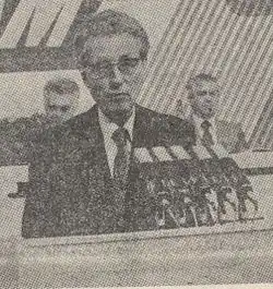 Mit Änderung der Verfassung der SFRJ wurde er im Mai 1974 als Präsident des Bundes der Kommunisten Mazedoniens auch kraft Amtes Mitglied des Präsidiums der SR Mazedonien, des kollektiven Staatspräsidiums, und im April 1982 als Mitglied des Präsidiums wiedergewählt.[17][18] Nach Beendigung seiner Tätigkeit als Sekretär des ZK des Bundes der Kommunisten Mazedoniens übernahm Angel Čemerski am 28. April 1982 von Ljupčo Arsov den Posten als Präsident des Präsidiums der Sozialistischen Republik Mazedonien und war damit bis zu seiner Ablösung durch Blagoje Taleski am 4. Mai 1983 Präsident dieser Teilrepublik.[19]